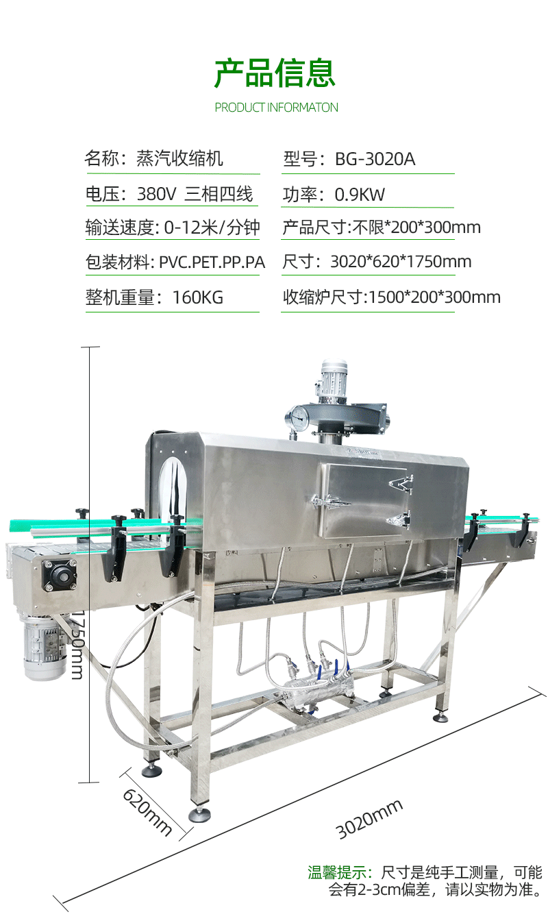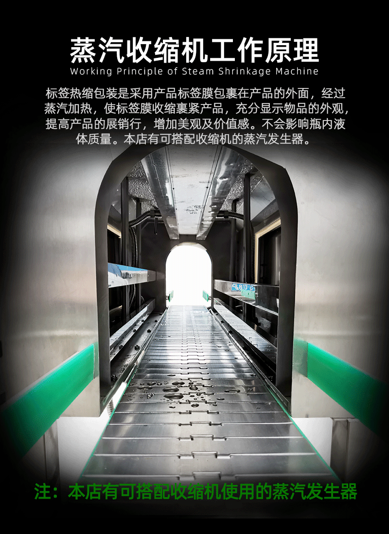• 節(jié)能環(huán)保:在蒸汽產(chǎn)生過程中,通過合理的加熱控制和蒸汽循環(huán)利用,可有效降低能源消耗。而且,收縮包裝后的產(chǎn)品更加緊湊,在運(yùn)輸和儲(chǔ)存過程中能夠節(jié)省空間,間接減少了物流成本。