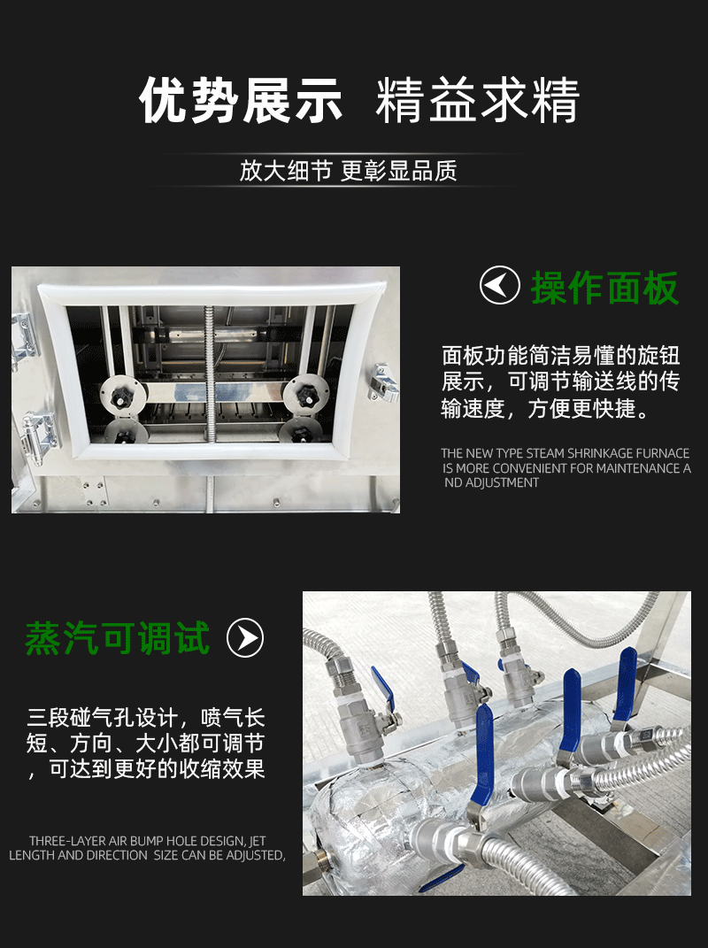 • 溫度和壓力控制技術(shù):精確的溫度和壓力控制對(duì)于蒸汽收縮機(jī)至關(guān)重要。通過溫度傳感器和壓力傳感器,機(jī)器能夠?qū)崟r(shí)監(jiān)測(cè)蒸汽的溫度和壓力,并反饋給控制系統(tǒng)。控制系統(tǒng)根據(jù)設(shè)定的參數(shù)對(duì)加熱元件和蒸汽流量進(jìn)行調(diào)節(jié),確保蒸汽溫度和壓力穩(wěn)定在合適的范圍內(nèi)。例如,對(duì)于不同材質(zhì)和厚度的薄膜,需要不同的溫度和壓力來實(shí)現(xiàn)最佳收縮效果,這一技術(shù)能夠滿足這種多樣化的需求。