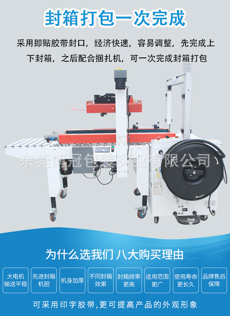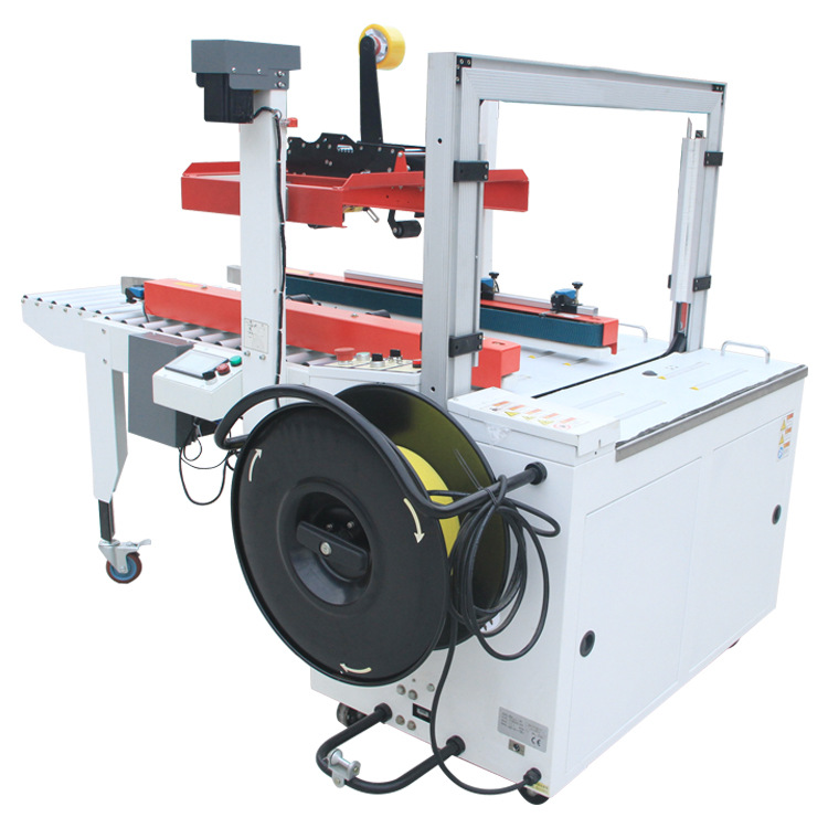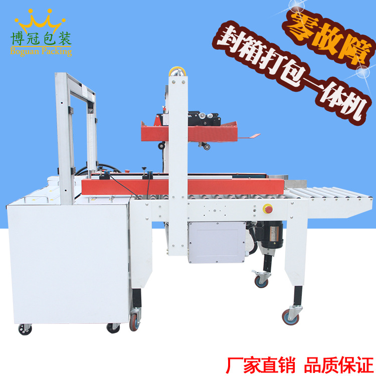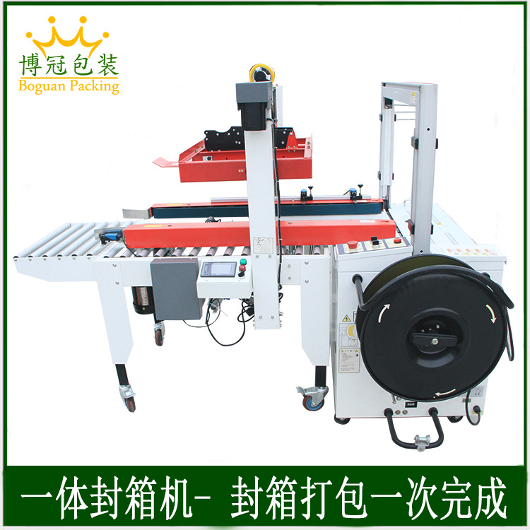 - 一字封箱打包機整體結構緊湊,各個工作模塊緊密相連。輸送部分、封箱部分和打包部分在空間上合理布局,既保證了工作流程的順暢,又最大程度地減少了設備的占地面積。這種緊湊設計使其能夠方便地安裝在各種生產環境中,如小型工廠車間、電商倉庫等。