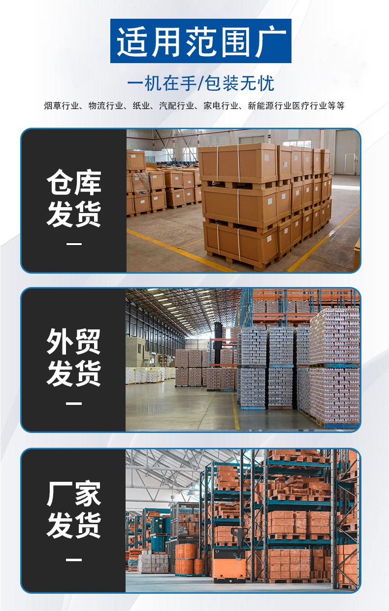 - 打包帶類型:PP 帶成本低、韌性好,適合紙箱等輕貨;PET 帶強度高、耐磨損,適合金屬、建材等重貨,需確認設備支持的帶寬(12-19mm)與帶厚(0.6-1.3mm)范圍。