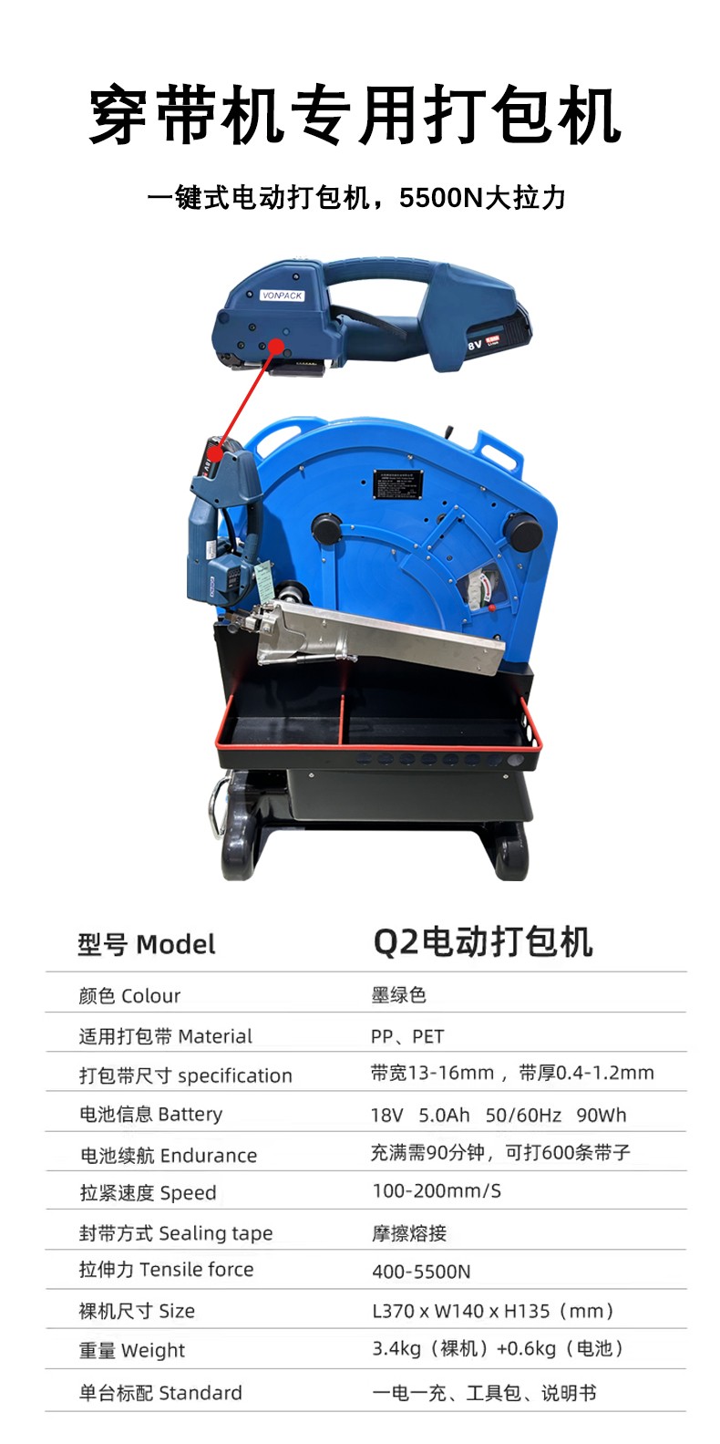 - 智能收緊:根據貨物類型(如紙箱、金屬件)自動調節束緊力(常規范圍 200-5000N),確保帶子緊貼貨物但不壓損,部分重型機型束緊力可達 9000N 以上,適配建材、鑄件等重物。