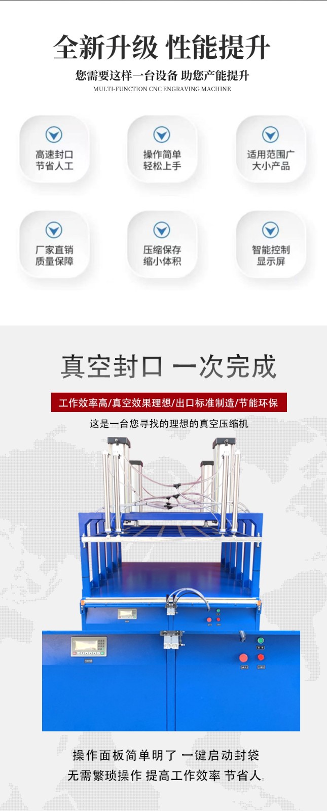 真空壓縮封口機(jī)是一種用于將物品進(jìn)行真空包裝并封口的設(shè)備,能有效延長物品保質(zhì)期、減小包裝體積,廣泛應(yīng)用于食品、家紡、電子等多個(gè)行業(yè)不同型號的真空壓縮封口機(jī)操作略有差異,但一般步驟如下:首先將待包裝物品放入包裝袋,整理好袋口;然后將袋口放入封口機(jī)的密封槽內(nèi),若為外抽式,需將抽氣嘴拉出套入包裝袋;接著按下抽真空按鈕,開始抽氣,達(dá)到所需真空度后,抽氣嘴縮回(部分機(jī)型自動(dòng)完成);最后再次按下相關(guān)按鈕進(jìn)行封口操作,冷卻后即可取出包裝好的物品。延長保質(zhì)期的核心邏輯