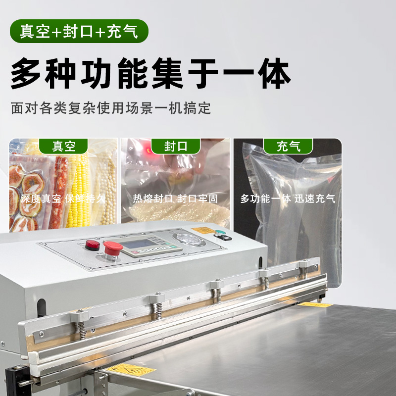 多功能一體的外抽真空包裝機,是在基礎外抽真空功能上,整合了充氣保鮮、封口、印字等多種功能的設備,能一站式滿足不同物品的包裝需求,核心優勢是功能集成度高、場景適配性強,無需額外購置多臺設備。