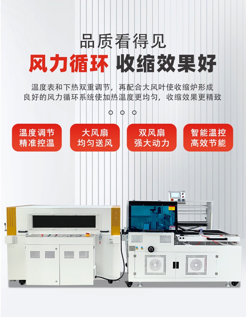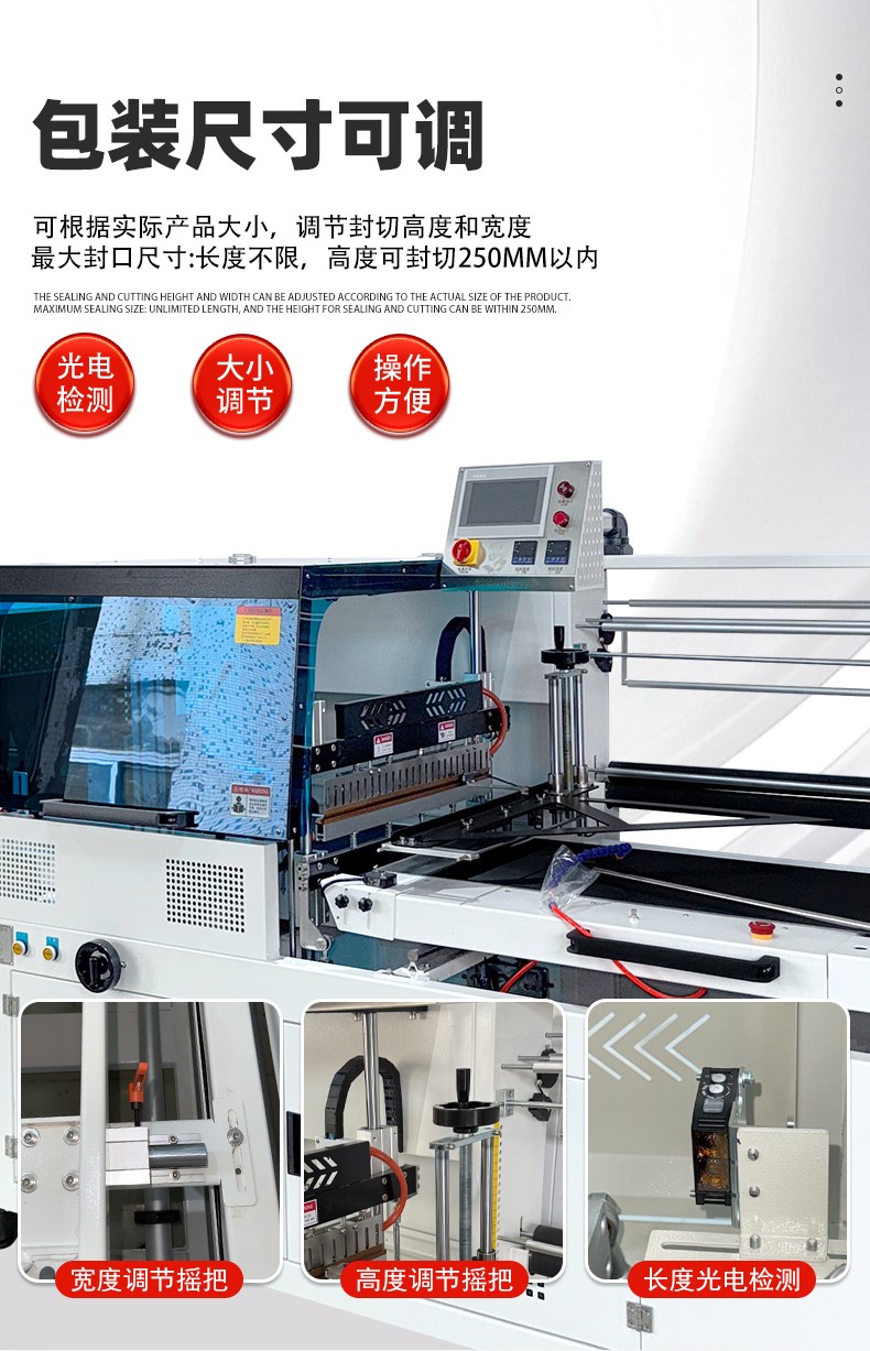 - 長度無限制:拓展包裝適用范圍,尤其解決長尺寸、異形長條產(chǎn)品的包裝難題,同時保持封口牢固、收縮平整的包裝效果。