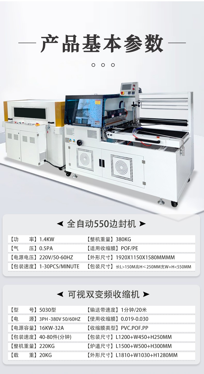 全自動邊封熱收縮包裝機的高自動化,核心體現(xiàn)在流程閉環(huán)自動化和操作智能化,能大幅減少人工參與,提升生產(chǎn)效率和穩(wěn)定性: