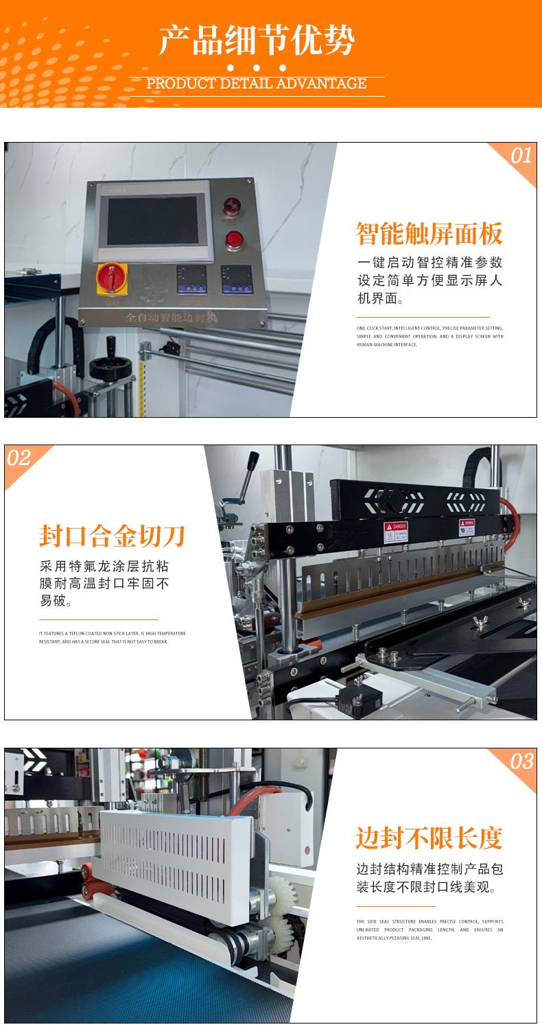 傳統(tǒng)包裝設(shè)備(如枕式包裝機)常受封切結(jié)構(gòu)限制,無法滿足長尺寸產(chǎn)品包裝,而邊封設(shè)計通過創(chuàng)新的封口邏輯,實現(xiàn)包裝長度 “無上限”: