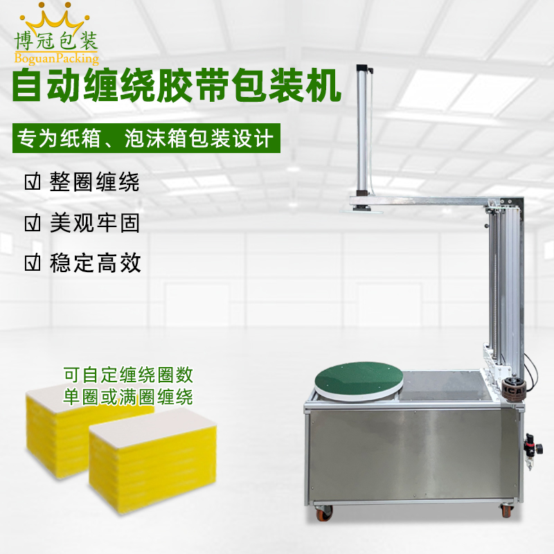 - 貨物纏繞機(jī):主要用于托盤貨物、大型設(shè)備等的包裝,通過旋轉(zhuǎn)工作臺帶動貨物旋轉(zhuǎn),同時膠帶從上方或側(cè)面進(jìn)行纏繞,如常見的物流倉儲用膠帶纏繞機(jī)。