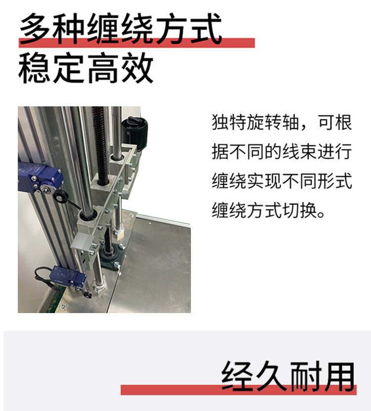 - 纏繞精度高:一些線束纏繞機(jī)的纏繞緊密度誤差可控制在 ±2mm 以內(nèi),能精準(zhǔn)完成各種規(guī)格物品的膠帶纏繞工作。