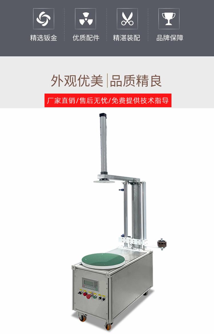 - 高效連續(xù)作業(yè):無需人工固定薄膜、剪斷收尾,從貨物上料(搭配流水線可全自動上料)到纏繞完成僅需 30-90 秒 / 件,單臺設(shè)備每小時可處理 40-120 件貨物,是人工纏繞效率的 5-8 倍。