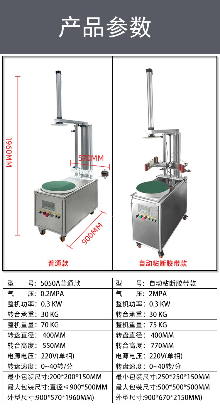 - 重型 / 大型貨物:替代人工難以完成的高強(qiáng)度纏繞作業(yè),既保證包裝牢固度,又避免人工操作的安全風(fēng)險,提升重型貨物包裝效率。