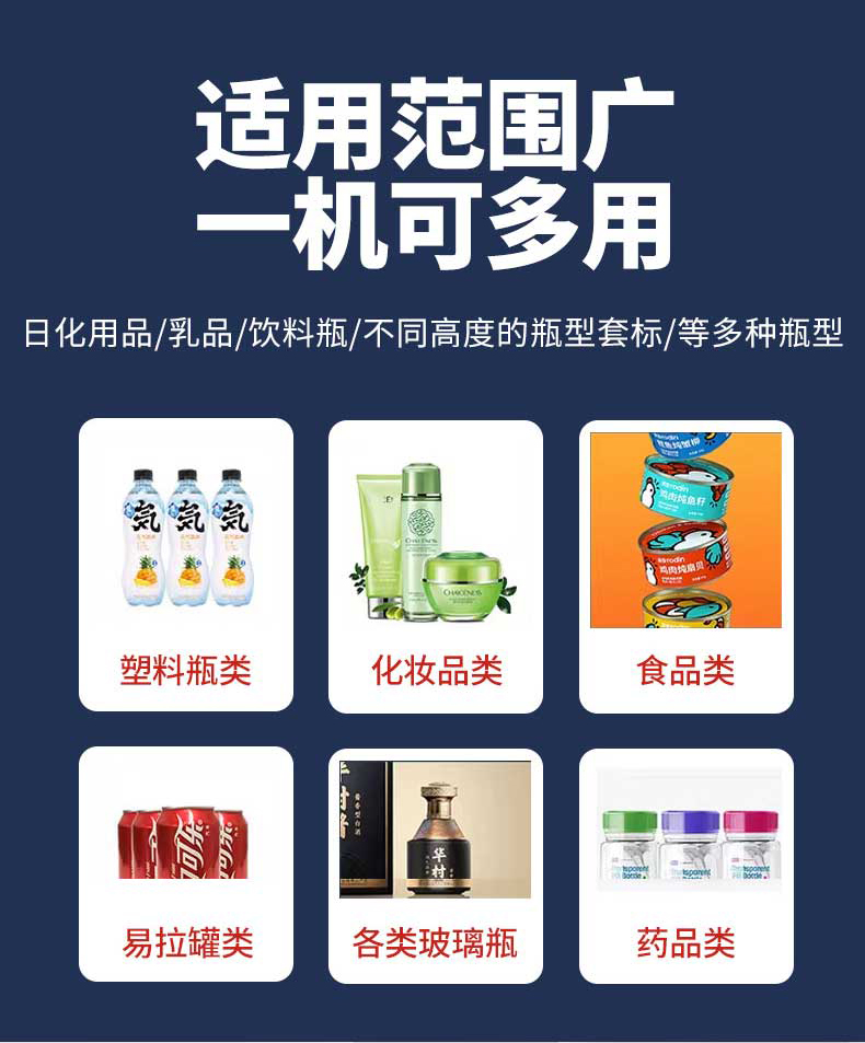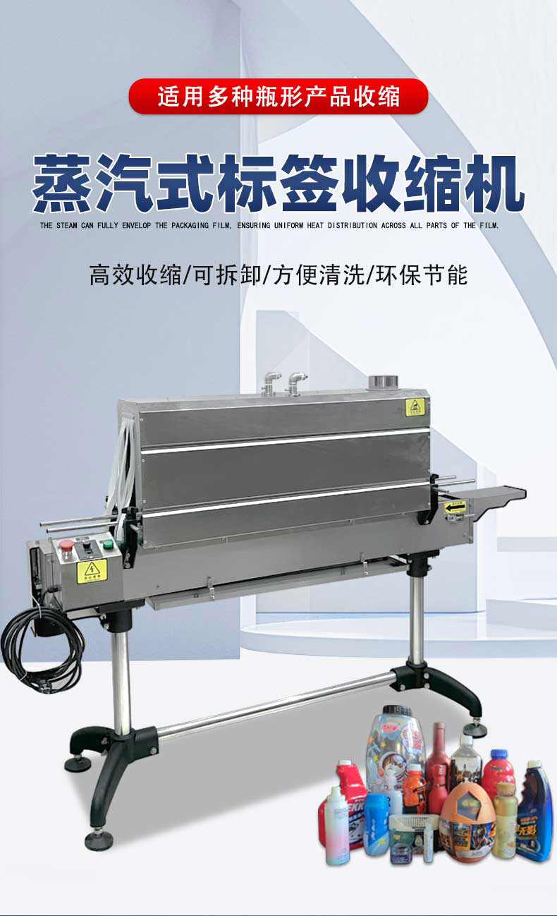 - 適配不同形狀產(chǎn)品:對(duì)于圓瓶類(lèi)的飲料瓶、香水瓶,蒸汽可無(wú)死角環(huán)繞瓶身,讓收縮膜從頂部到底部勻速收縮,貼合瓶身曲線(xiàn)且無(wú)褶皺;針對(duì)方瓶類(lèi)的化妝品禮盒、醬料瓶,蒸汽能均勻滲透到平面與棱角,收縮膜精準(zhǔn)嵌入邊角,使包裝方正挺括;就算是扁瓶類(lèi)的酒壺、扁狀洗手液瓶,蒸汽也能適應(yīng)其特殊輪廓,讓收縮膜完美貼合,凸顯產(chǎn)品造型。