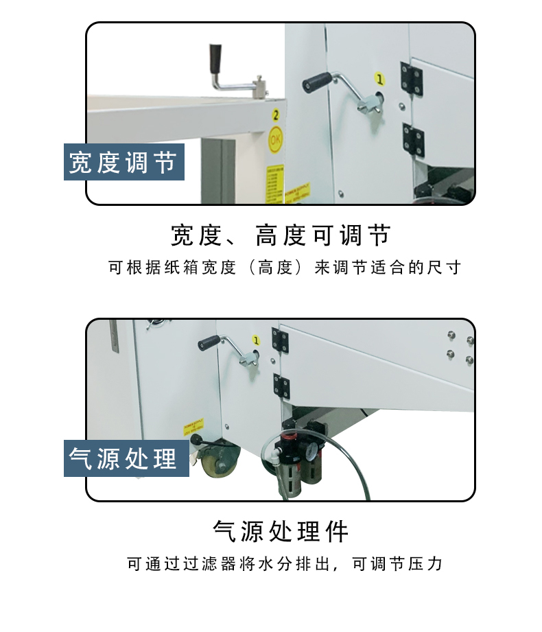 - 自動開箱封底機可以適應多種規格的紙箱。無論是不同的長度、寬度還是高度的紙箱,只要在機器的設計參數范圍內,都可以進行有效的開箱和封底操作。例如,它可以處理小型的電子產品包裝盒,也可以處理大型的家電產品包裝箱。