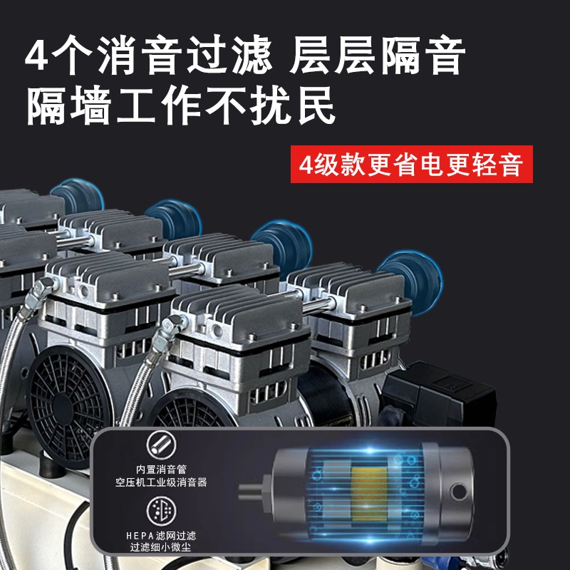 - 牙科設備:在牙科治療椅上,空氣壓縮機為牙鉆、口腔清潔噴槍等設備提供動力。牙鉆通過壓縮空氣驅動,可以高速旋轉,用于去除牙齒上的齲齒部分??谇磺鍧崌姌尷脡嚎s空氣將水或清潔劑霧化,對口腔進行清潔。