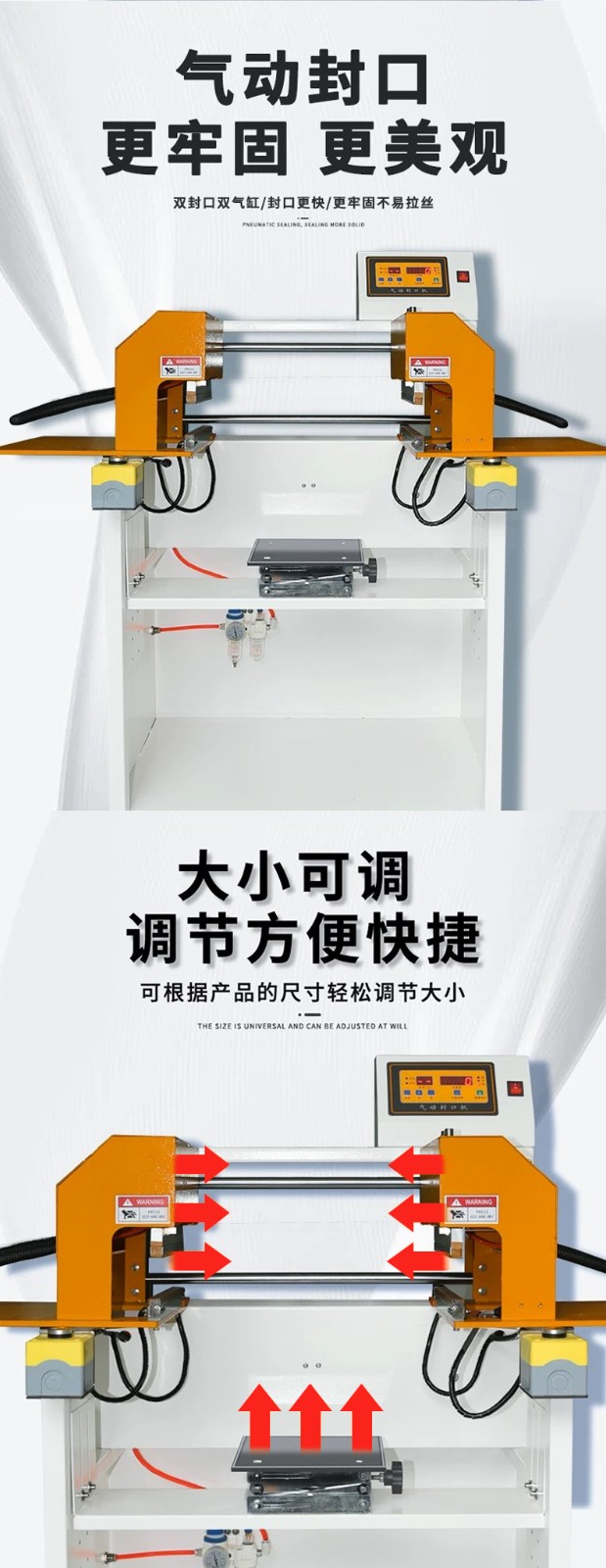- 封口原理:通過加熱裝置將封口部位的塑料薄膜加熱至熔融狀態(tài),然后利用機械壓力使薄膜貼合在一起,冷卻后形成牢固的封口。通常采用加熱絲或加熱板作為加熱元件,溫度和加熱時間可根據不同的薄膜材質和厚度進行調整。