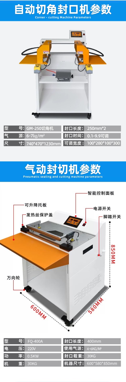 - 氣動控制原理:利用壓縮空氣作為動力源,通過氣動元件如氣缸、電磁閥等控制機器的各個動作。當需要執(zhí)行某個動作時,電磁閥通電,壓縮空氣進入相應的氣缸,推動活塞運動,從而帶動機械部件完成如封口、切角等操作。這種控制方式具有動作迅速、力量穩(wěn)定、易于控制等優(yōu)點。