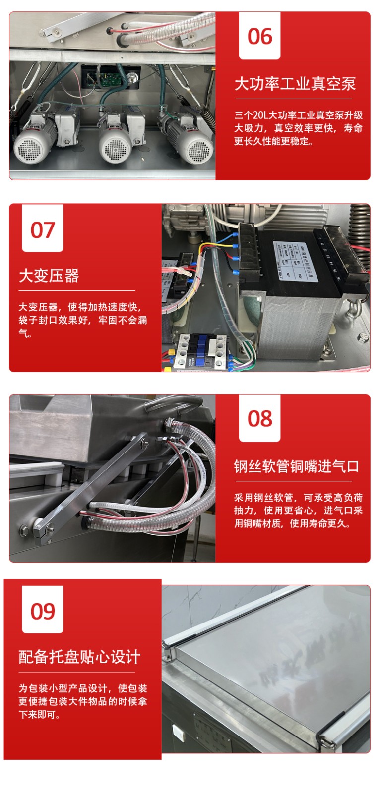 - 循環往復:左室、右室始終保持 “一室抽真空密封,一室裝袋準備” 的交替狀態,兩個真空室的作業周期無縫銜接,沒有任何空閑等待時間。