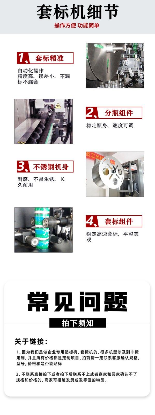 套標(biāo)精度的核心是 “標(biāo)簽與容器的位置對(duì)齊”,需解決容器輸送偏差、套合時(shí)機(jī)錯(cuò)位等問題,關(guān)鍵技術(shù)包括: