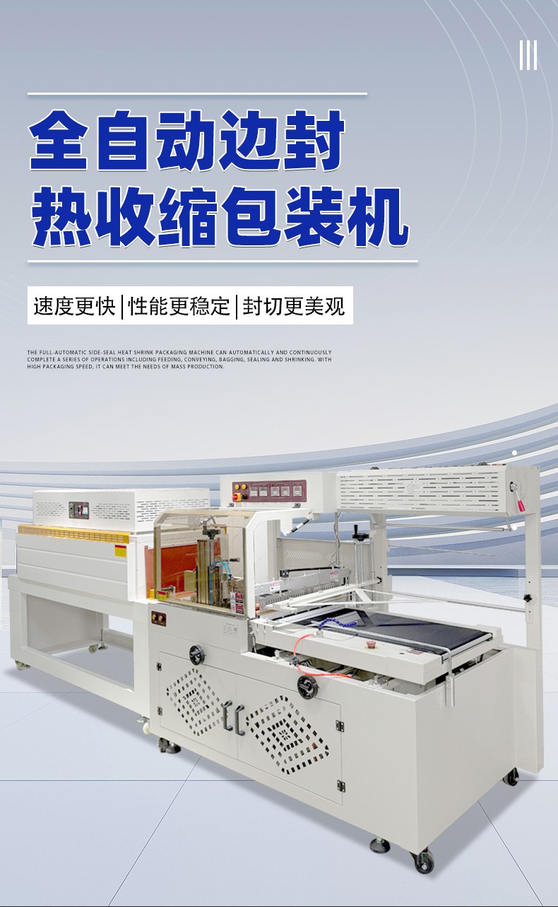全自動封切熱收縮包裝機是一種高度自動化的包裝設備,主要用于對各類產(chǎn)品進行熱收縮包裝,通過封切和熱收縮等操作,使包裝膜緊密貼合產(chǎn)品,達到保護和美觀的效果。以下是具體介紹: